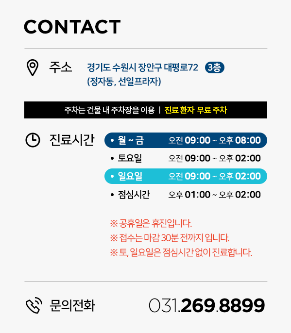 상호명 : 수원정자동본튼튼의원|주소 : 경기도 수원시 장안구 대평로72, 3층 (정자동, 선일프라자)